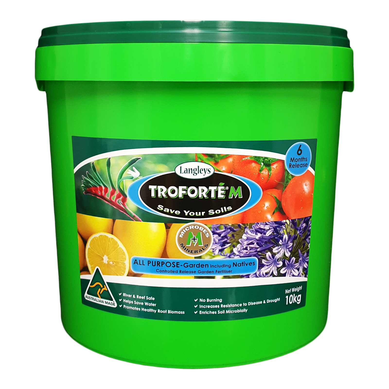Troforte Plant Tablets contain a biologically coated specifically engineered mineral base incorporating up to 60 minerals and scientifically balanced blend of up to 24 strains of well researched and trialled Australian cultured beneficial soil microbes. These include bacteria, fungi and algae to carry out wide range of biological activities within the soil such as Nitrogen-fixing, Nutrients building, producing growth hormones, decomposing organic mater to organic carbon, protecting beneficial bacteria by releasing antibiotics that can assist in inhibiting disease-producing microbes like root rot, fungi and pythium as well as conditioning of soils by improving soil structure. Some of strains included are Azobacter, Azosprillum, Bacilli, Cellulosic fungi, Myxobacteria, Phosphobacteria, Pseudomonas, Rhizobium, Streptmyces, Sacchromyces, Trichoderma, VAM and Yarrowia. Some bacterial species break down minerals and release potassium, phosphorus, magnesium, calcium and iron to make them plant available and other species make and release natural plant growth hormones like auxins, gibberellins and cytokines. With over two - thirds of nitrogen being in water-insoluble form, it effectively and efficiently delivers organic feeding of energy-rich carbon and nitrogen through microbial activity. This also helps in increasing and sustaining the population of beneficial microbes in the soil. Troforte® Plant Tablets are more efficient, environmentally friendly and economical than high analysis chemical fertilisers.